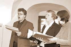Итак, одной из целей семинара, проходившего в Пскове, стал поиск ключей к исполнению старинной русской музыки, в том числе - кантов. Для этого его участники во главе с Антонием Пильхом попытались как бы заново пройти путь, проделанный поколениями русских исполнителей на рубеже XVII-XVIII веков.